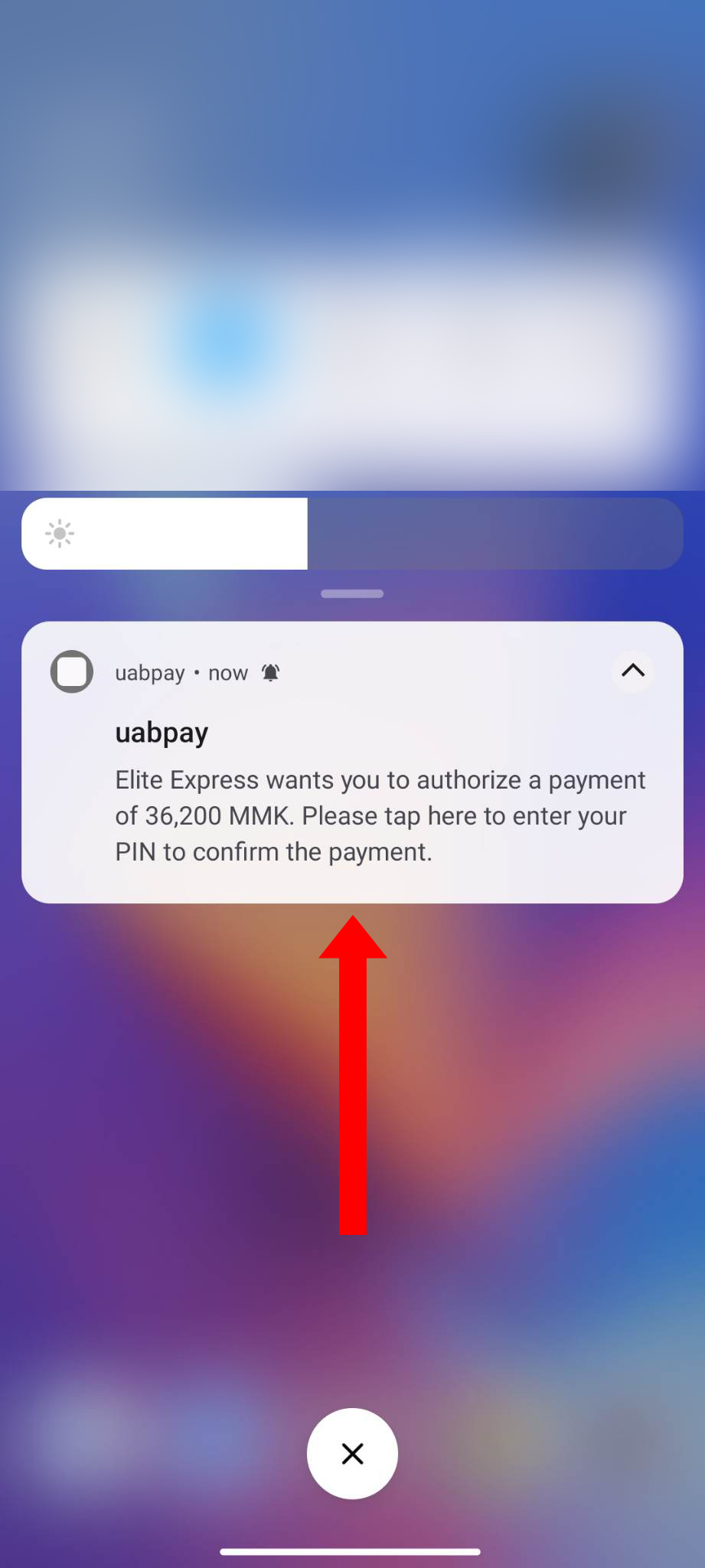 ၈။ ထို့နောက် အောက်ပါပုံတွင် ဖော်ပြထားသည့်အတိုင်း ပေါ်လာပါက ယခုရောက်ရှိနေသော Browser အား ပိတ်လိုက်ခြင်း သို့မဟုတ် refresh ပြုလုပ်ခြင်းမလုပ်ဘဲ မိမိ၏ဖုန်းအတွင်းရှိ uabpay application ထဲသို့ဝင်ရောက်ပေးပါ။ (ဖုန်းသီးသန့်အသုံးပြုများအနေဖြင့် ဖုန်း၏ Home ဖြင့် ခေတ္တ ထွက်ပြီး uabpay application ထဲ ဝင်ပေးပါ)
